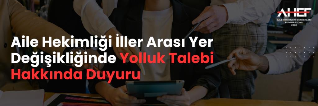 Aile Hekimliği İller Arası Yer değişikliğinde yolluk talebi hakkında duyuru ektedir.