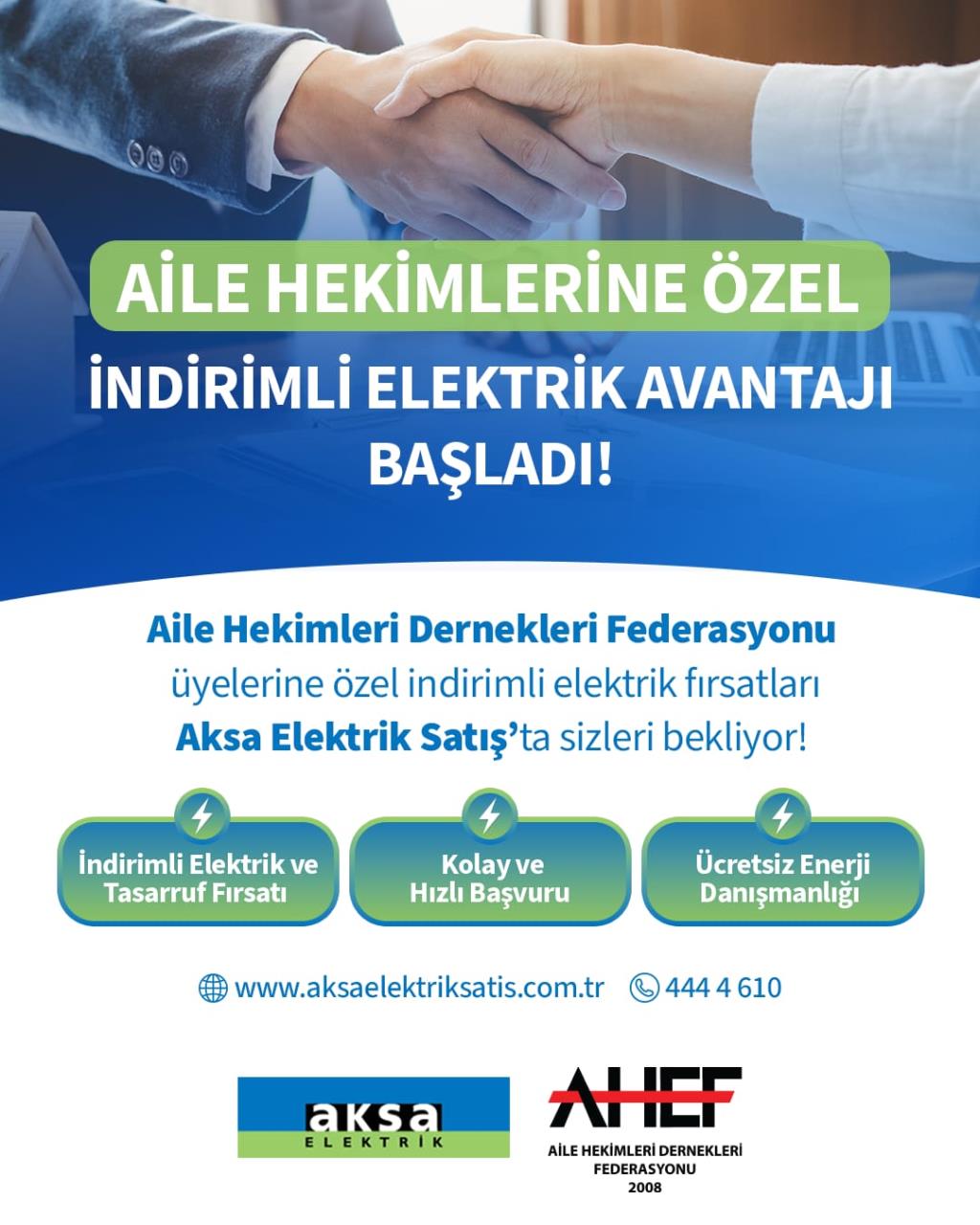 AHEF, İndirimli Elektrik Kampanyası için Enerji Sektörünün önde gelen şirketlerinden AKSA ELEKTRİK ile anlaşmaya varmıştır .