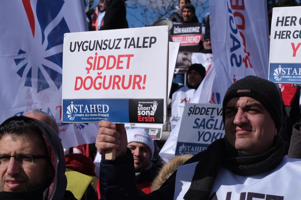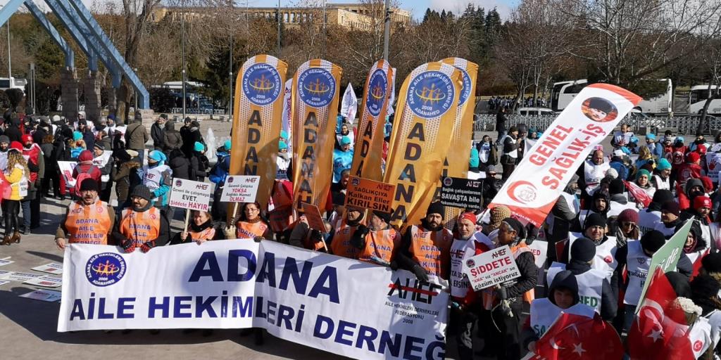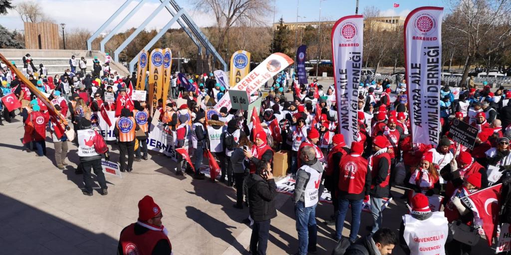Aile Hekimleri Dernekleri Federasyonu (AHEF)’na bağlı 72 il derneği, Türk Sağlık-Sen, ASEF (Aile Sağlığı Elemanları Federasyonu), AHESEN (Aile Hekimliği Çalışanları Sendikası), Genel Sağlık İş, TAHUD (Türkiye Aile Hekimleri Uzmanlık Derneği), Birlik ve Dayanışma Sendikası (Birinci Basamak Sağlık Çalışanları Birlik ve Dayanışma Sendikası) Ankara Anıtpark’ta hekimlere ve sağlık çalışanlarına yönelik şiddeti kınamak için bir araya geldi.