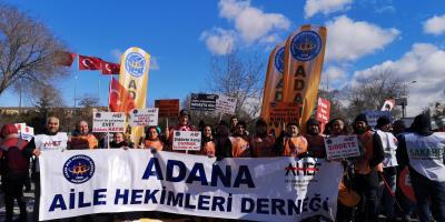 “İzin hakkı olmayan sağlık çalışanları aile hekimliği hizmet sözleşmesi ile neredeyse cezalandırılıyor. Anayasa ve uluslararası sözleşmeler yok sayılıyor. Her ilde farklı Aile Hekimliği olamaz. İhmal edilen bizler; her sağlık raporunun uğrak yeri, yüzlerce hastaya bakmaya zorlanan, vekaletsiz izin hakkı olmayan, 7 gün 24 saat çalışan, mesai dışı zorla peynir dolaplarında aşı icap nöbeti tutan, ölüm muayenelerine geceleri hiçbir can güvenliği olmadan giden, tek birimli hizmet kurumlarında bir başına ne izin hakkı ne can güvenliği olmadan çalışan, cezaevlerinde kapalı kapılar ardında hizmet sunanlar, en ücra köşelerde, ilçelerde, entegre hastanelerde, köylerimizde hastalara şifa dağıtanlarız.”