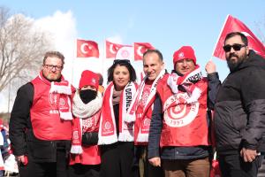 Miting sonunda slogan ve marşlara mitinge katılanlar coşkuyla eşlik ettiler