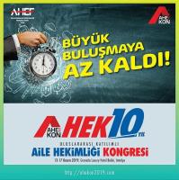 Bu yıl 10.sunu düzenleyeceğimiz Türkiye’nin Aile Hekimliği alanındaki en prestijli kongresi olan AHEKON 13-17 Kasım 2019 tarihleri arasında Antalya Granada Luxury Hotel Belek’te gerçekleşecektir.