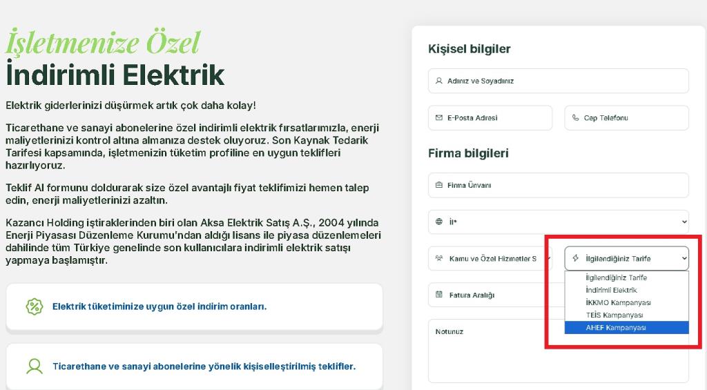 AHEF, İndirimli Elektrik Kampanyası için Enerji Sektörünün önde gelen şirketlerinden AKSA ELEKTRİK ile anlaşmaya varmıştır .
